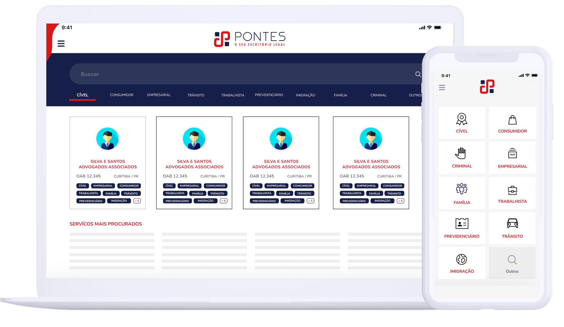 Esse descaso nos motivou a criar o Aplicativo Pontes: uma ferramenta que permite que você se conecte com advogados do Brasil inteiro. Tudo isso do seu celular, computador ou tablet – basta ter acesso à internet!
